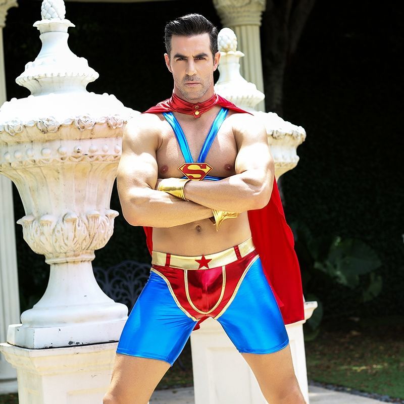 Чоловічий еротичний костюм супермена "Готовий на все Стів" One Size: плащ, портупея, шорти, манжети