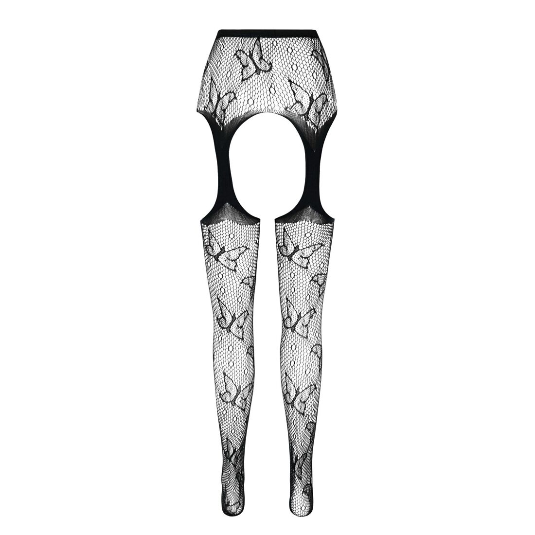 Еротичні колготки-бодістокінг Passion ECO S001 white, з доступом, декор метелики, підв’язки